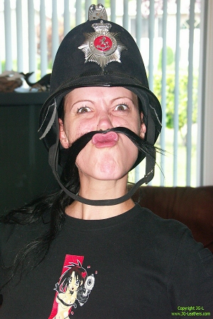 - 18th Sept. - The party on the 17th was a small one, but a lot of fun, and the next day was spent doing mostly vanilla stuff. A friend had come along in his MG Midget and took Pupett out for a ride, then after that, it was time for me to make some cigarettes and Pupett gave me a hand. Next, we decided to see if she could wear MY pony hoof boots, as hers had been left in Germany. Definitely successful! A quick trip to the beach on Boundary Bay then the local kid's playground gave a few funny shots and definitely were not kinky, except to the local vanilla inhabitants, who thought that adults playing on kid's toys was a tad bent. Little did they know! ******************************* - 19th Sept. - However! All is not fun and games here at the Prince of Wails residence! Even for the guests!! And so, Pupett was put to work mowing the lawn, guided around the paddock by Steffy the Rubber Doll. We shot a ton of pix on this set-up over a two day period, as well as what seemed like miles of video tape, but what a blast! The neighbours seemed to enjoy it as much as we did :-). A smoke break seemed like a good idea, then it was right back at it. Steffy kept Pupett busy and had a blast ensuring that a proper tension was maintained on the traces, but her steering was a little off the mark. Eventually the job got done, but there'd been some resistance from our Horse Woman and so a little training seemed to be in order. Naturally, Steffy called for the assistance of 'Jay', the ranch ram rod from the old Pony Girls At The Ranch videos of 20 years ago, and the gray haired Aulde Pharte showed up, complete with the same black hat, cowboy boots, sun glasses and rein set. :-) Despite the control that can exerted with a lunge rein, Pupett was a feisty Horse Woman and always demanded firm control, with an occasional touch of the quirt to keep her paying attention as to who was REALLY the boss.