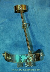 As well, I continue to diddle around with the additions to the steel restraint/chastity system, with the creation of a 'Back Bar' that will connect the rear centre ring of the collar to a rear centre ring on the belt.