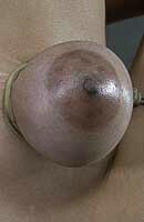 The resultant device not only looks kind of evil, and when a vacuum is applied, it can be ... ah ... exciting, for want of a better description. From personal experience, it's NOT a good idea to stretch the hose with the vacuum still on (for at that point, the corrugations have collapsed) and although it certainly feels good to pull it out, when released again, as must inevitably happen ... well, it's not the kind of pinching one can enjoy, and I ain' t THAT bent! Too, one feels somewhat like a weird elephant, but such is evolution :-).