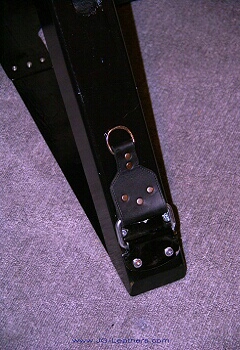 Left ... assembled pedestal.  Centre ... detail showing ankle/leg restraint.  Right ... return spring for jack unit.
