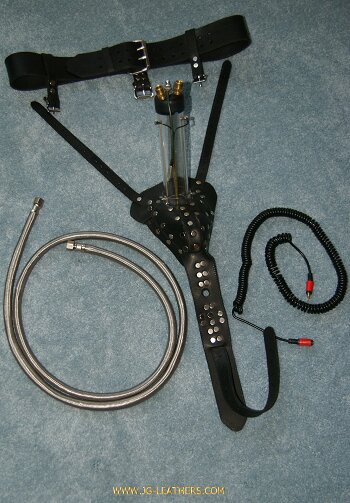 Belt, cup  and tube (can be made with or without 1/4 or 3/8" brass sound, smooth or ribbed) with provision for a separately controlled or integrated butt plug.