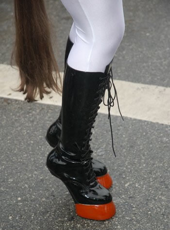 It was the first time attending the Fair, for thisgirlsub and GRIMLY and she wore a spectacular white and black outfit that had folks snapping pix like crazy.  She's a wonderful Horse Woman and very insistent that things be done right, and so walked the streets of the Fair for 2 and a half hours, in the boots you see above.  Wow!
