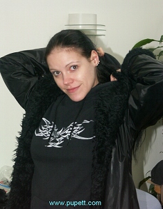 I eventually ran out of things to babble about and we did a small demonstration of the effects of TC's controls being tweaked; this eliciting some interesting noises from my beautiful little victim and some substantial jumping around, much to the audience's delight and approval. It's amazing how quickly the three hours passed and everyone, including Pupett and I was satisfied. We stayed for the after-presentation party and got to meet many of the friendly people who comprise APEX's membership, then it was off to the motel to pack for the return trip to San Francisco. - 26th - 27th March - Return to San Francisco - It was another day of solid driving and there's no point in describing it further. The InterState highway network is a wonderfully efficient road network and something the USA can be justifiably proud of. We arrived in SFO at 21:00 and gradually unkinked ourselves (difficult, given who we are and what we do :-)), and got settled in at Mark's place once again. Pupett and Matthias spent much of the 27th packing their bags for their return trip to Germany, and being the happily adventurous person she is, Pupett soon wore a pair of cute mittens. That evening, Mark couldn't resist showing off some of the other gear from his incredible collection. One of his newest acquisitions was a ten foot length of very heavy chain, and Pupett was given the opportunity to see just how massive it was and demonstrated her skills even while wearing these limiting devices. Mark is a man of many aspects and amongst them is his skill and love of Tango dancing, which he soon demonstrated to Pupett, much to her, Matthias' and my delight. Various forms of fun happen at his amazing residence, and soon Matthias and Pupett were experimenting with some newly-purchased equipment: arm corsets and another pair of bondage mittens. Mark brought out some of his beloved straight light jackets and soon Pupett was fully enveloped. Needless to say, we all really liked how she looked, once fully secured in the thick rubber one. And so, that was the last bash we took at playing before they went to the airport and got on the big silver bird for the 12 hour flight to Munich, followed immediately by an additional 2 hour drive to their home. A lllllooooonnnnggg flight and day. My own stay in San Francisco lasted until the 31st of March. I wanted to do at least one photo-shoot before heading back and that adventure took place on the evening of the 30th. This adventure can be seen in its entirety in the JG-L Articles Section, Page 23. Other than the rotten cold I caught on the trip, it was a resounding success and a wonderful time to reconnect with all of my friends and make new ones. ****************************** - JG-LEATHERS - TRAVEL PIX INDEX & ARCHIVE PAGE IS HERE - - HOME PAGE - |