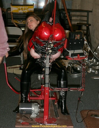 I know from personal experience of playing in TC, just how oppressive it can be after even just a short time, and so constantly check on the welfare of who ever is in it, even for such short durations as are needed for a presentation. Pupett was OK, and so I continued, occasionally turning up the power of the e-stim to keep both her and the audience interested.