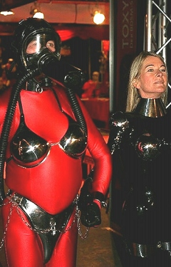 Juergen and Cordula, as the owners of CAPTURED TABOO'S are true innovators and produce some awe inspiring original equipment,  What you see in the pix above and those that follow below is the latest addition to their kit, this being a moulded Fiberglas body form that locks on.  Woo-Woo!  It's beautifully made and finished and a true piece of very striking eye candy.