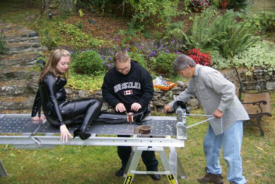 Henry has also created a portable rack and of course the ladies were encouraged to try it out.  LyonSlyr and His_Lupa give Naughty-V a run for her money.