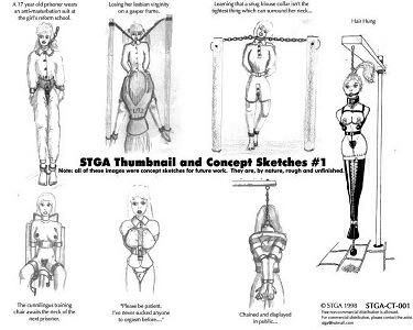 STGA has been around quite a while and has a unique and interesting perspective on the confinement, control and discipline of the female. He's an illustrator that expresses his views succinctly and so I like his stuff a great deal with the hope that you'll enjoy it also :-)!