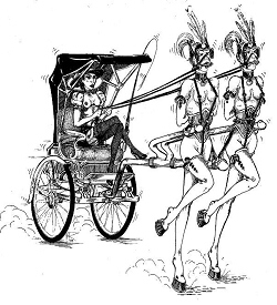 I am but one very small creator in the fetish universe, and so am always on the out look for inspiration and new ideas and so was totally impressed when I discovered Sir Jeff's Pony Girl website. He has done a wonderful job of collecting all kinds of pony girl/horse women art, pix and video clips, and my hat is definitely off to him for his dedication to this part of the fetish spectrum. Many of the images you see here were copied from his site and I recommend most highly that you pay him a visit.