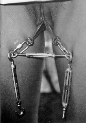 The Images on this page may 'squick' some of you, but they're just a record of the kinds of silly stuff humans do to amuse themselves. At the bottom of the page you'll find a series of images of "Predicament Bondage" using piercings, from the inimitable Gord and I once more have to congratulate him for his evil inventiveness. Jesus! Where does he get these ideas??