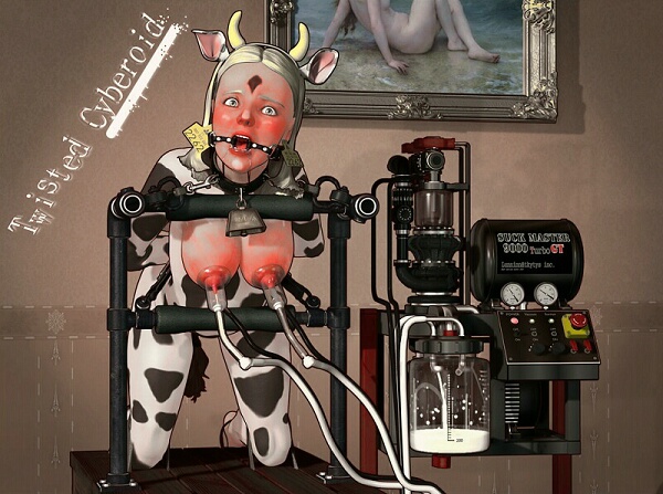 For those of us in the kink community it is not a long leap to consider that a female can, in fact, be partially turned into a dairy cow and be milked by machine as required.  She, once framed in this role, will not be a happy person, especially as the role becomes more tightly defined.  Her breasts are no longer her own to control access to and soon she finds herself a captive.
