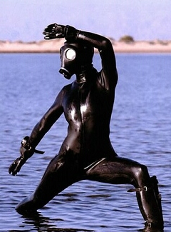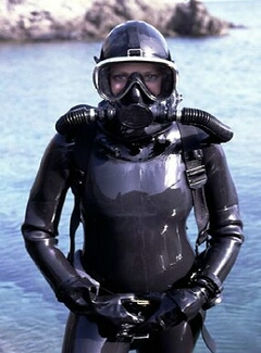 By extension, there is also the fascination with ladies, again encased in a rubber envelope, a wet suit, and adding in to the whole thing is that they are also involved with masks and controlled breathing. That these beautiful creatures have obviously elected to do it themselves, adds even more to the enticing brew.