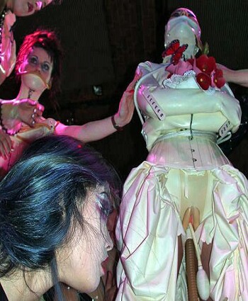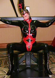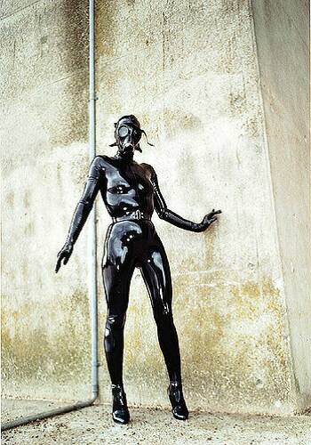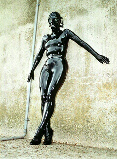 I don't know why I (and thousands of others) enjoy seeing ladies encased, enclosed, and/or obscured in rubber, but it seems to strike deeply at some part of the kink mind set. Is it the shininess? The smoothness? The 'hidden whore'? Damned if I know and so I'll shut up and let you drool in peace over the images below :-).